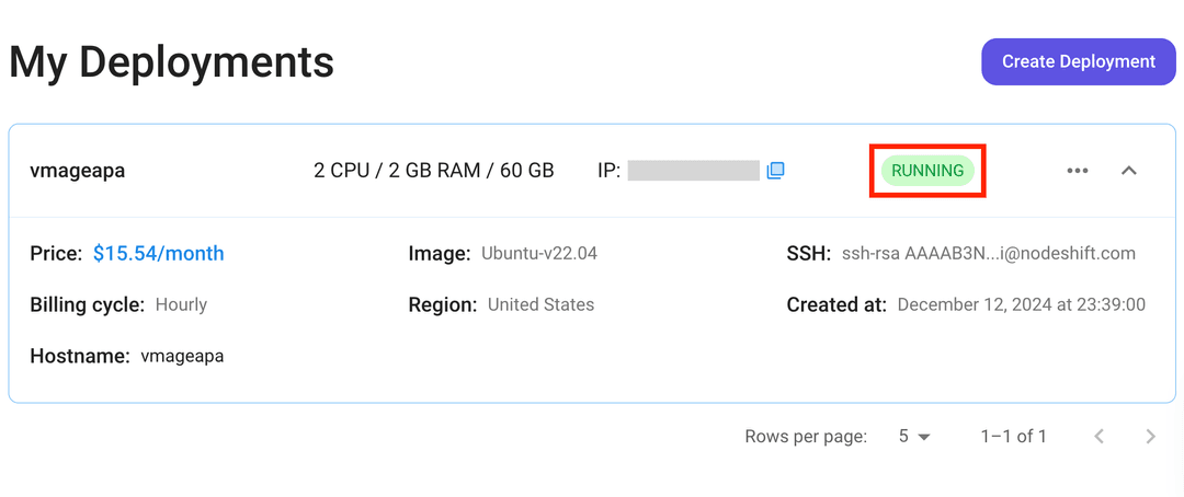 Once your node shows this status, follow the below steps to connect to the running VM via SSH: