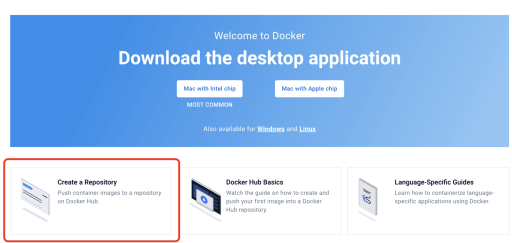 - Create an account or log in to Docker.