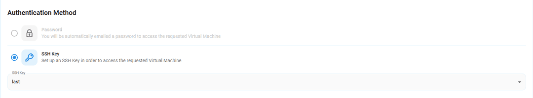 There are two authentication methods available: Password and SSH Key. SSH keys are a more secure option. To create them, please refer to our official documentation.