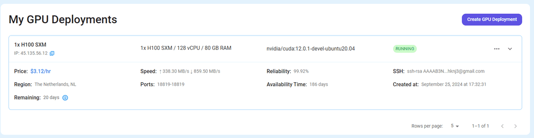 We will use 1x H100 SXM GPU for this tutorial to achieve the fastest performance. However, you can choose a more affordable GPU with less VRAM if that better suits your requirements.