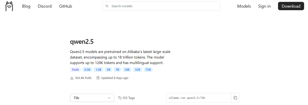 Website Link: https://ollama.com/library/qwen2.5:72b