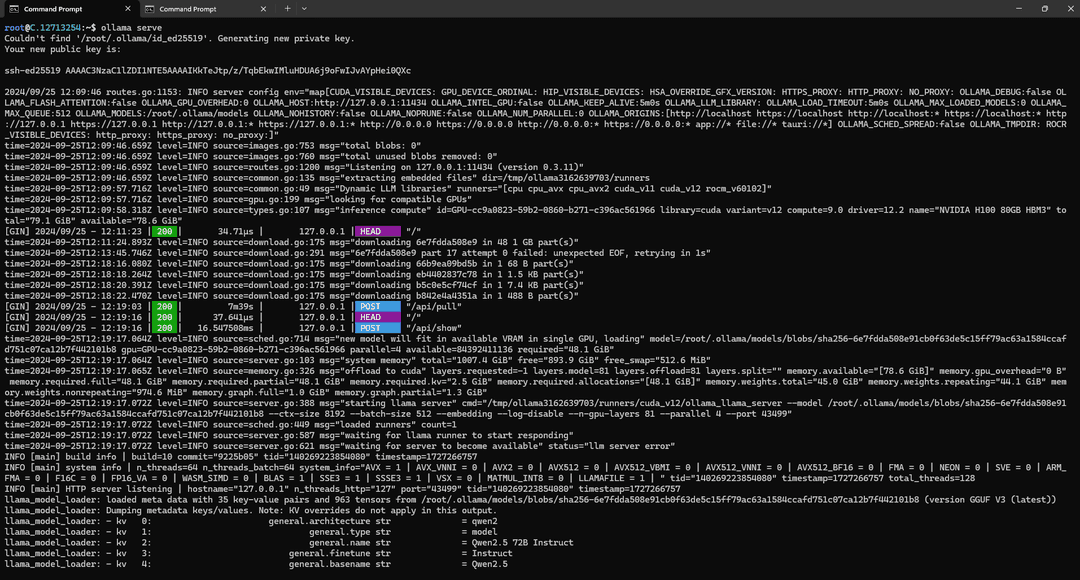 Next, run the following command to host the Qwen2.5 model so it can be accessed and utilized efficiently.