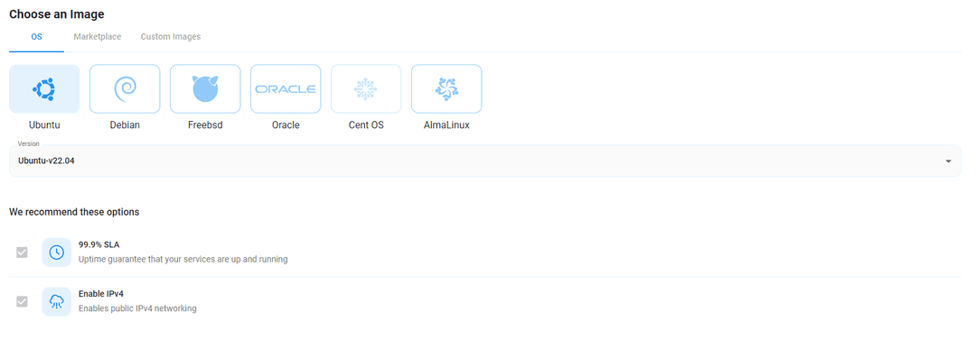 Next, you will need to choose an image for your Virtual Machine. We will deploy the VM on Ubuntu, but you can choose according to your preference. Other options like CentOS and Debian are also available to Running a Dedicated Ethereum RPC Node.