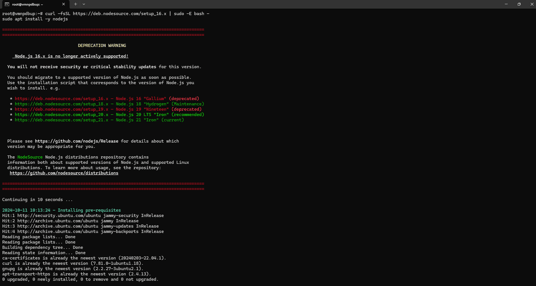 curl -fsSL https://deb.nodesource.com/setup_16.x | sudo -E bash -