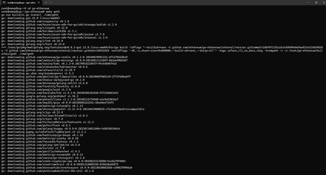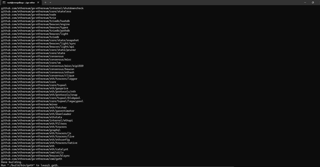 This will compile the Geth client, allowing you to run your Ethereum node.