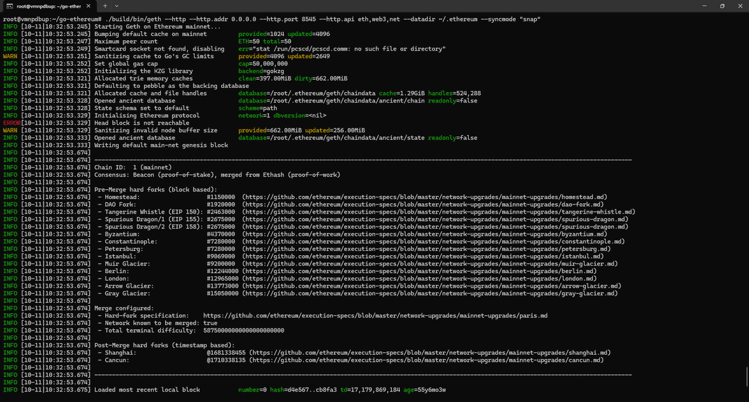 ./build/bin/geth --http --http.addr 0.0.0.0 --http.port 8545 --http.api eth,web3,net --datadir ~/.ethereum --syncmode "snap" --verbosity 3
