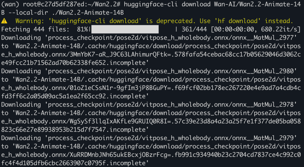 huggingface-cli download Wan-AI/Wan2.2-Animate-14B --local-dir ./Wan2.2-Animate-14B