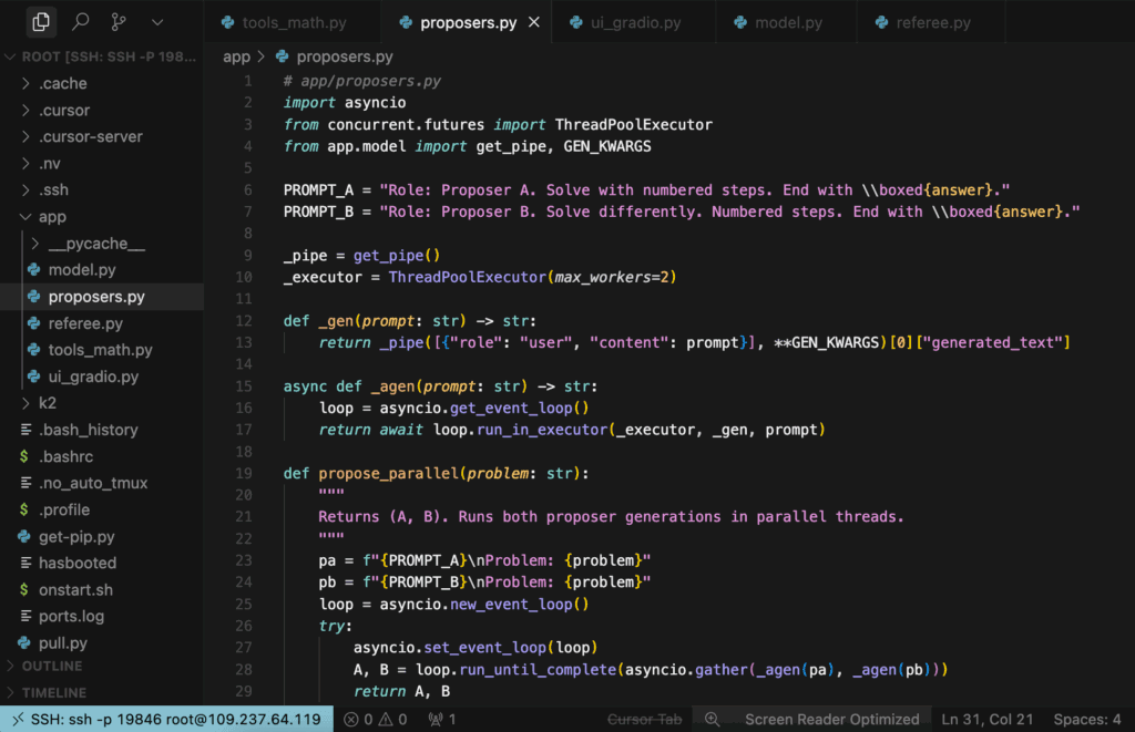 out_a = gr.Textbox(label="Proposer A", lines=22, show_copy_button=True, elem_classes=["bigbox"])