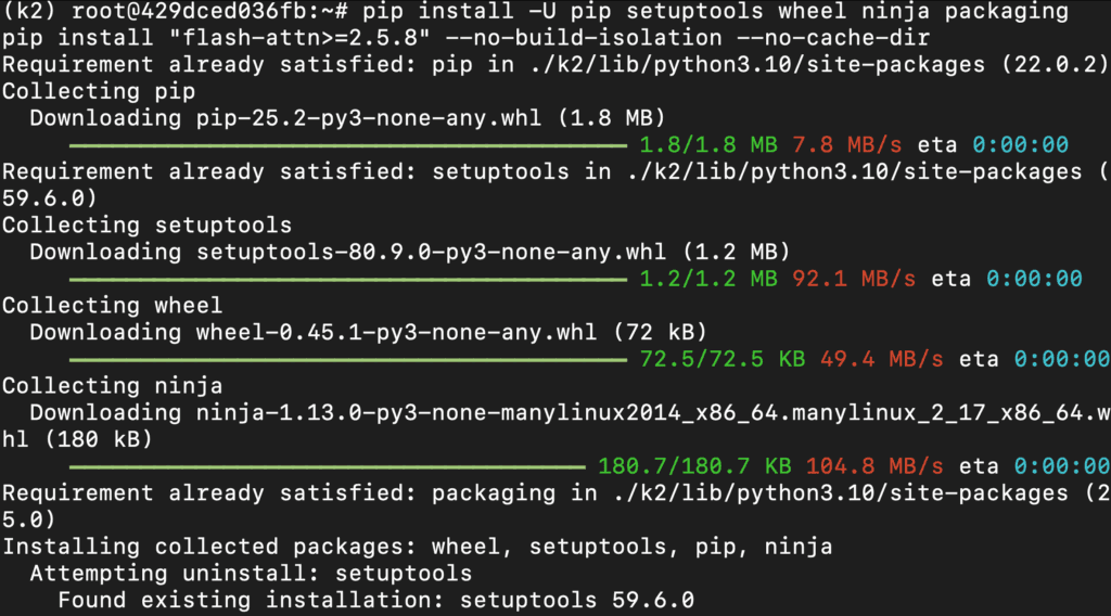 (and some GPU extras) need modern build tooling to compile or fetch wheels. Upgrading pip/setuptools/wheel