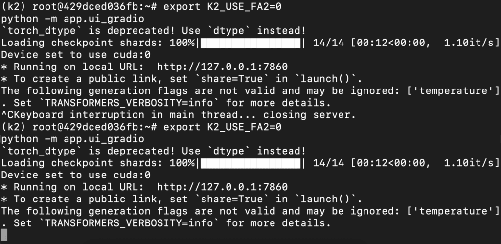 export K2_USE_FA2=0 # force standard attention (no FA2 required)
