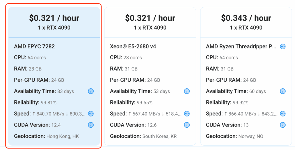 - For this tutorial, we’ll be using 1x RTX4090 GPU, however, you can choose any GPU as per the prerequisites.