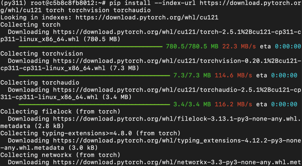 ), then install CUDA-enabled PyTorch (e.g., pip install --index-url https://download.pytorch.org/whl/cu121 torch torchvision torchaudio