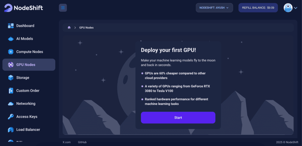For the purpose of this tutorial, we will use a GPU-powered Virtual Machine offered by NodeShift; however, you can replicate the same steps with any other cloud provider of your choice. NodeShift provides the most affordable Virtual Machines at a scale that meets GDPR, SOC2, and ISO27001 requirements.