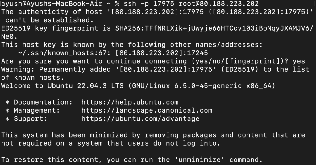 Now open your terminal and paste the proxy SSH IP or direct SSH IP.