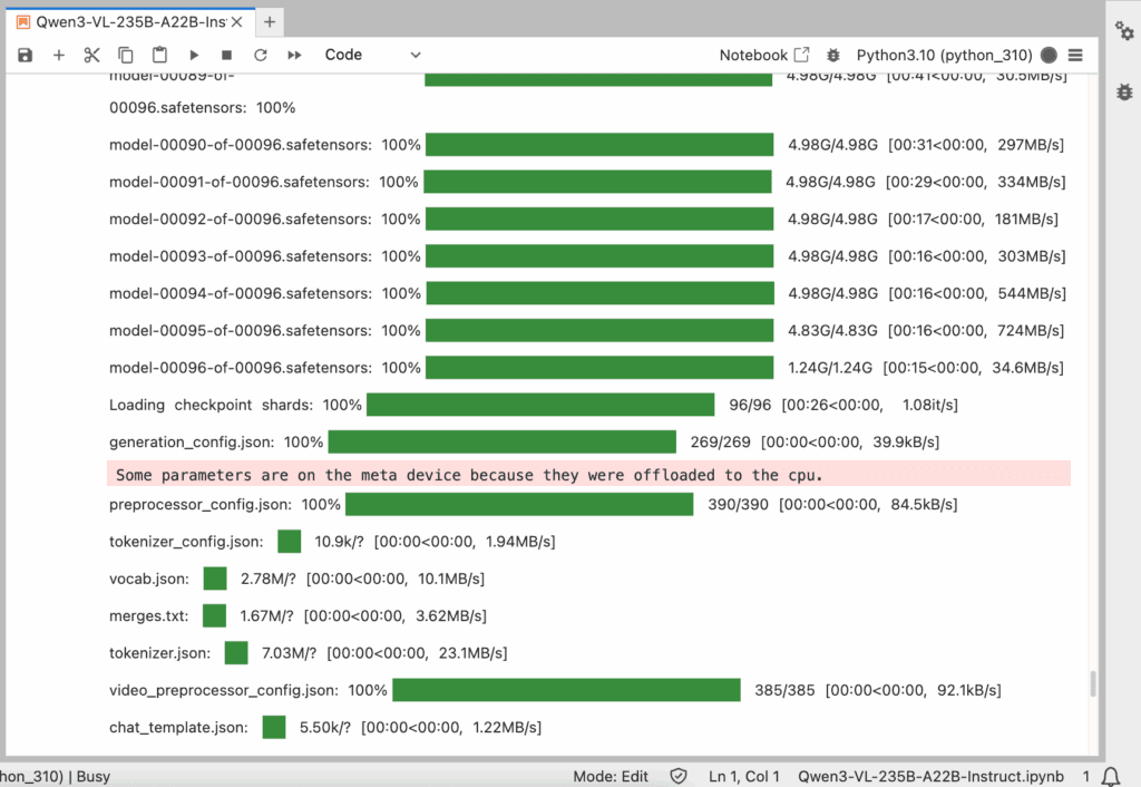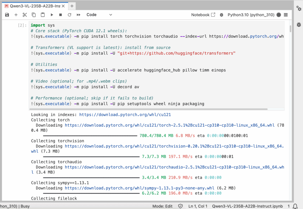 You just took Qwen3-VL-235B-A22B-Instruct from zero to working on a Jupyter GPU VM: verified the GPU, installed the VL stack, (optionally) enabled FlashAttention-2, authenticated with Hugging Face, loaded the MoE VL weights, and ran image/video prompts. The model shines on long-context, multi-image/video reasoning, but it’s heavyweight—expect the best experience on H100/A100 80GB; 48GB works with 8-bit plus short contexts and smaller batches. Keep performance smooth by using local images, shorter max_new_tokens, FA2 when available, and watching the device map to avoid CPU offload. From here, you can productionize with vLLM/SGLang (tensor parallel for >1 GPU), test Q4/Q8 quantized variants, and evaluate on your own benchmarks to tune quality vs. latency. This playbook gives you a clear, reproducible path to deploy Qwen3-VL for real multimodal work.