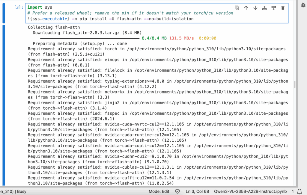 !{sys.executable} -m pip install -U flash-attn --no-build-isolation