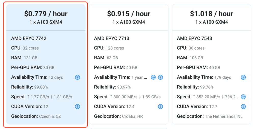 - For this tutorial, we’ll be using 1x A100 GPU, however, you can choose any GPU as per the prerequisites.