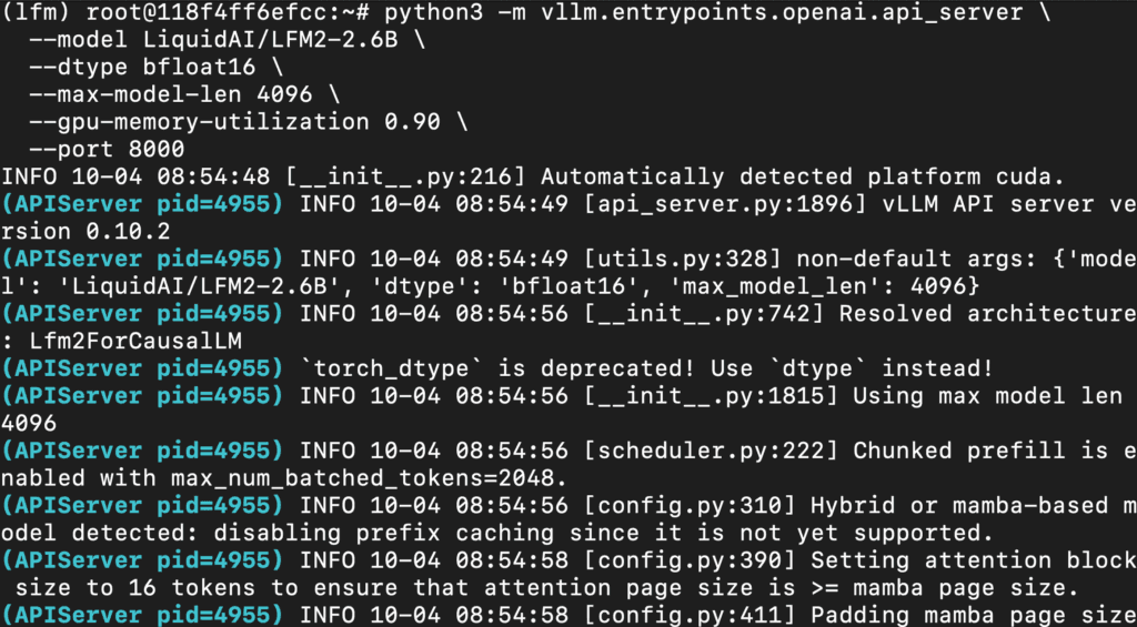 This setup ensures that the LFM2-2.6B runs in a GPU-enabled environment with proper CUDA access and high compute performance.
