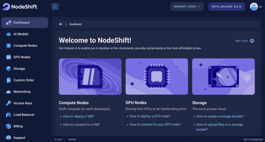 For the purpose of this tutorial, we will use a GPU-powered Virtual Machine offered by NodeShift; however, you can replicate the same steps with any other cloud provider of your choice. NodeShift provides the most affordable Virtual Machines at a scale that meets GDPR, SOC2, and ISO27001 requirements.